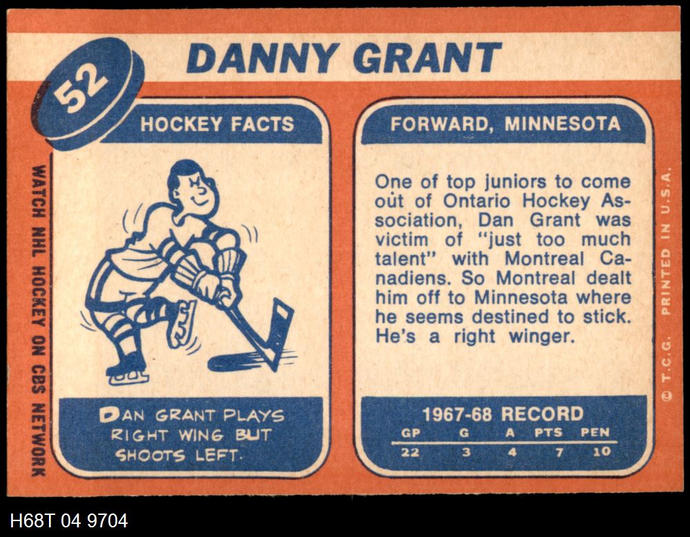 | 1968 Topps #52 Danny Grant | 6 - EX/MT | Front | Back |