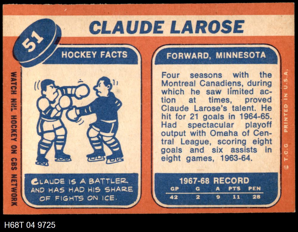 | 1968 Topps #51 Claude Larose | 5 - EX | Front | Back |