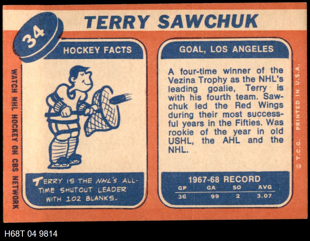 | 1968 Topps #34 Terry Sawchuk | 5 - EX | Front | Back |
