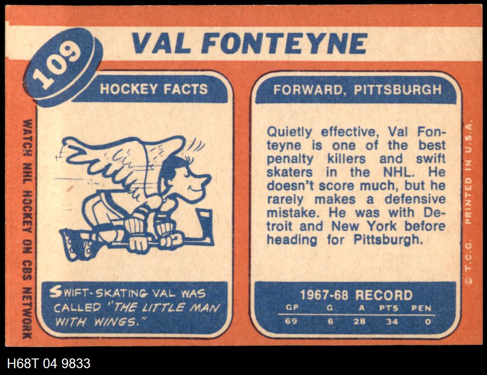 | 1968 Topps #109 Val Fonteyne | 5 - EX | Front | Back |