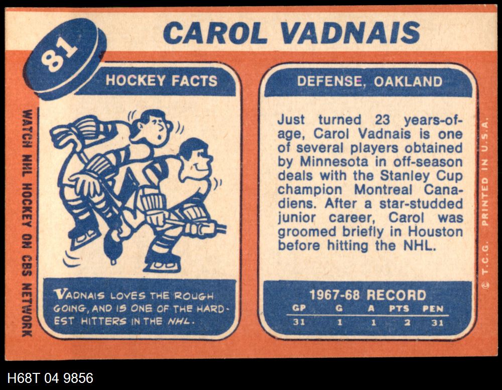 | 1968 Topps #81 Carol Vadnais | 5 - EX | Front | Back |