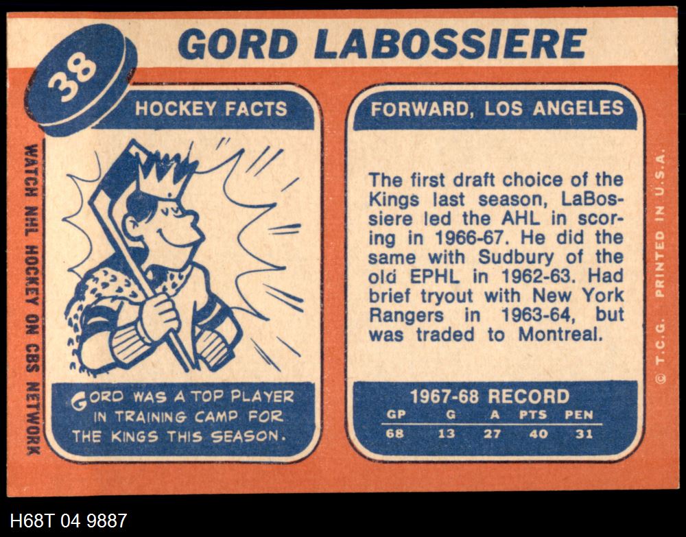 | 1968 Topps #38 Gord Labossiere | 5 - EX | Front | Back |