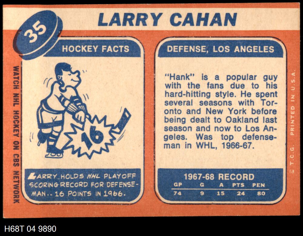 | 1968 Topps #35 Larry Cahan | 5 - EX | Front | Back |