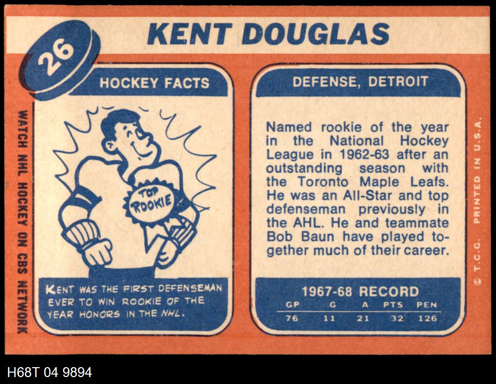 | 1968 Topps #26 Kent Douglas | 5 - EX | Front | Back |