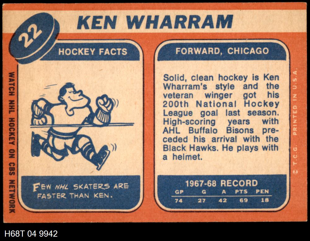 | 1968 Topps #22 Ken Wharram | 5 - EX | Front | Back |