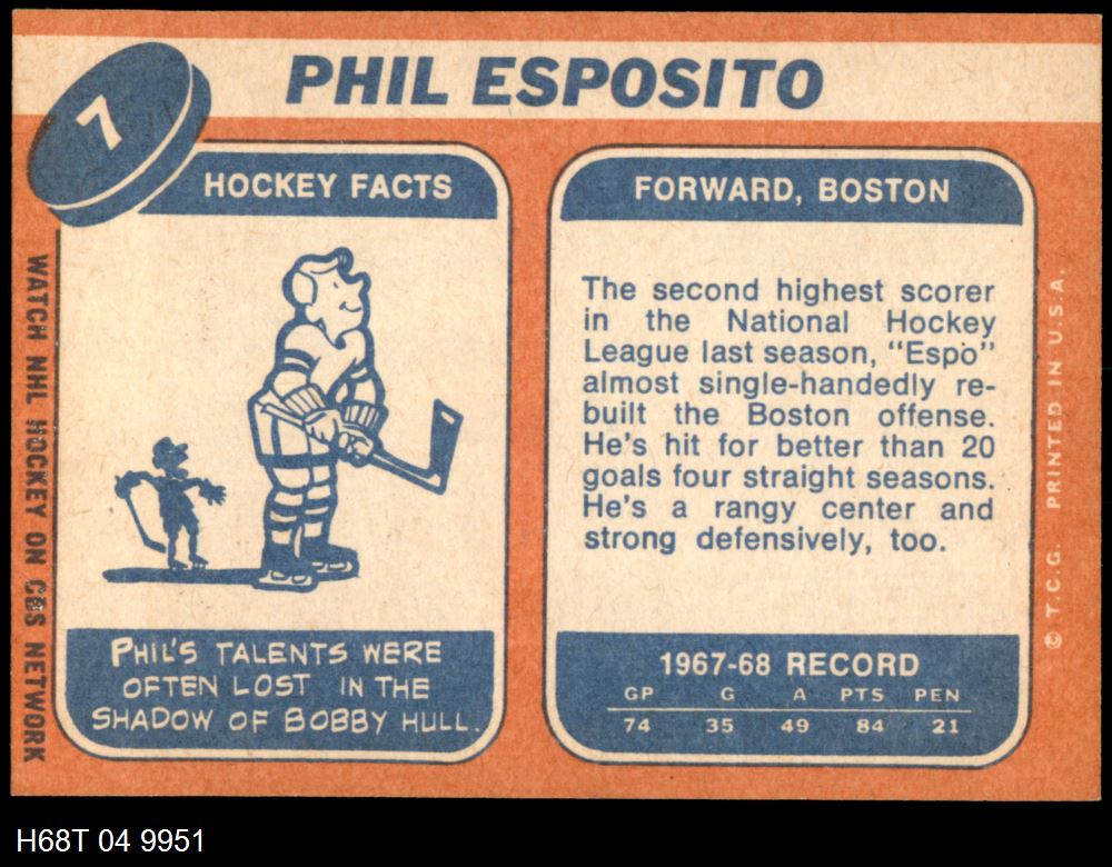 | 1968 Topps #7 Phil Esposito | 5 - EX | Front | Back |