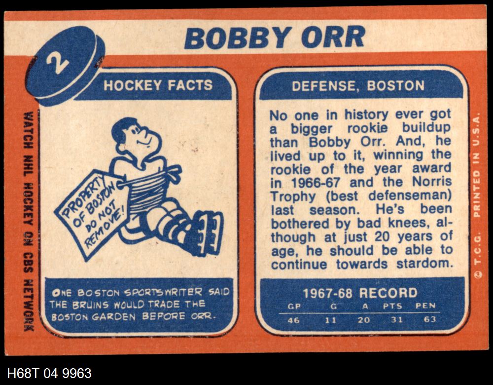 | 1968 Topps #2 Bobby Orr | 4 - VG/EX | Front | Back |