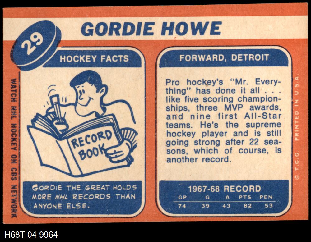 | 1968 Topps #29 Gordie Howe | 5 - EX | Front | Back |