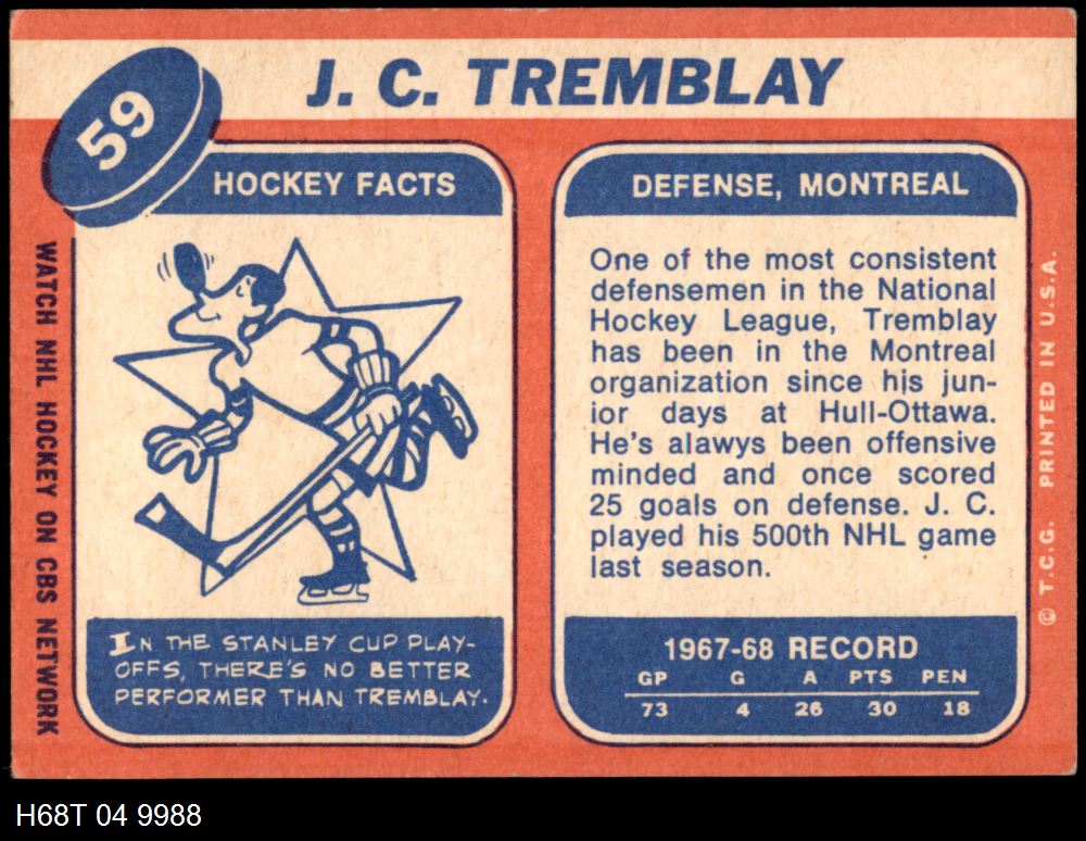 | 1968 Topps #59 J.C. Tremblay | 4.5 - VG/EX+ | Front | Back |