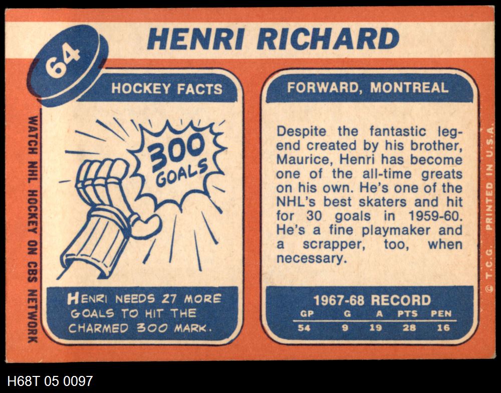 | 1968 Topps #64 Henri Richard | 5 - EX | Front | Back |