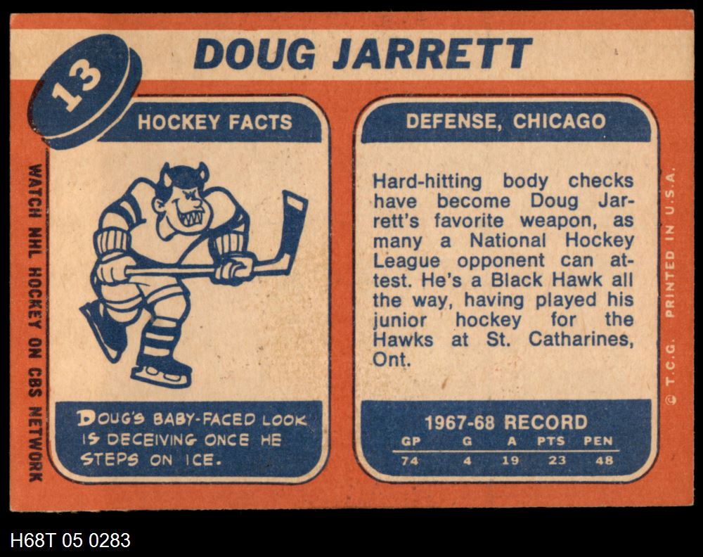 | 1968 Topps #13 Doug Jarrett | 5 - EX | Front | Back |