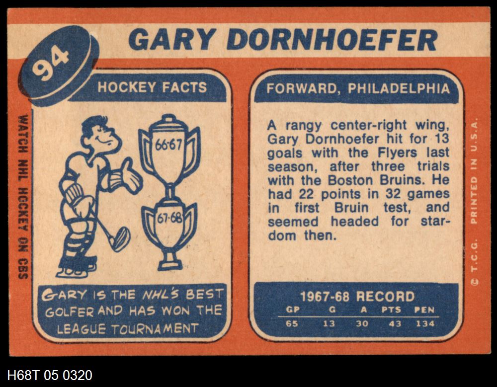 | 1968 Topps #94 Gary Dornhoefer | 5.5 - EX+ | Front | Back |