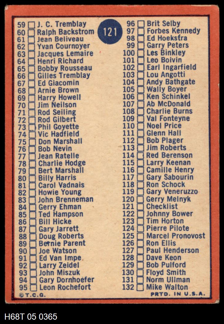 | 1968 Topps #121 Checklist | 1.5 - FAIR | Front | Back |