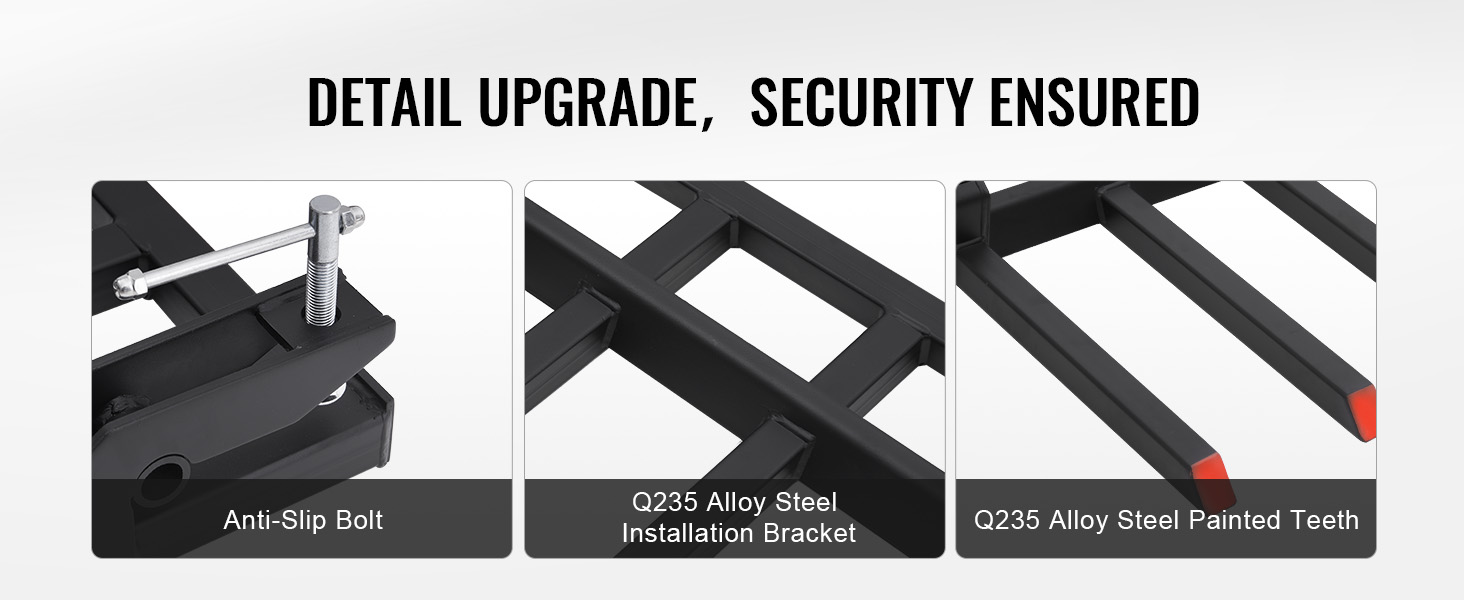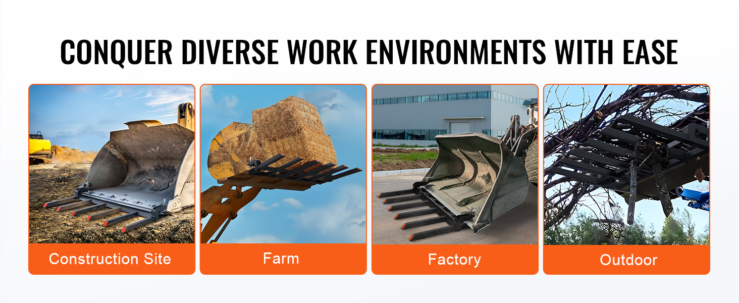 The debris forks for 60" tractor bucket can be used to easily clear debris around the workplace, such as wood, branches, etc. It is a versatile tool suitable for a wide range of projects and is widely used in landscaping and construction sites, logistic warehouses, and other places.