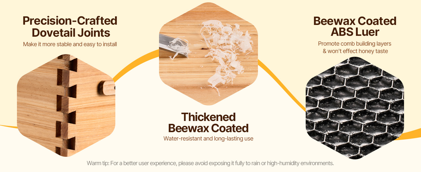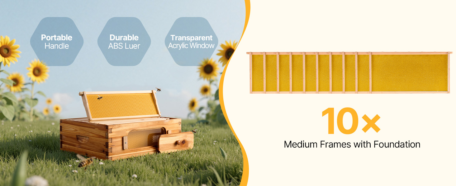 This product is equipped with clear acrylic panels, enabling effortless observation of bee behavior and activities. Strategically placed ventilation openings promote adequate airflow inside the hive. For colder months, the panels can be sealed to retain heat, fostering a comfortable and supportive habitat for the bees.