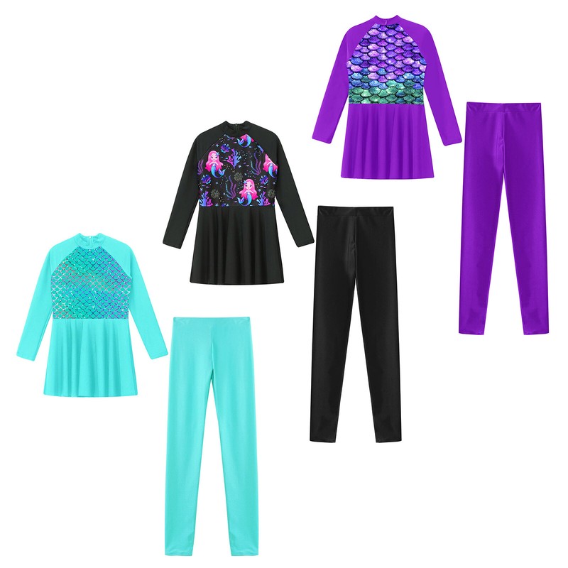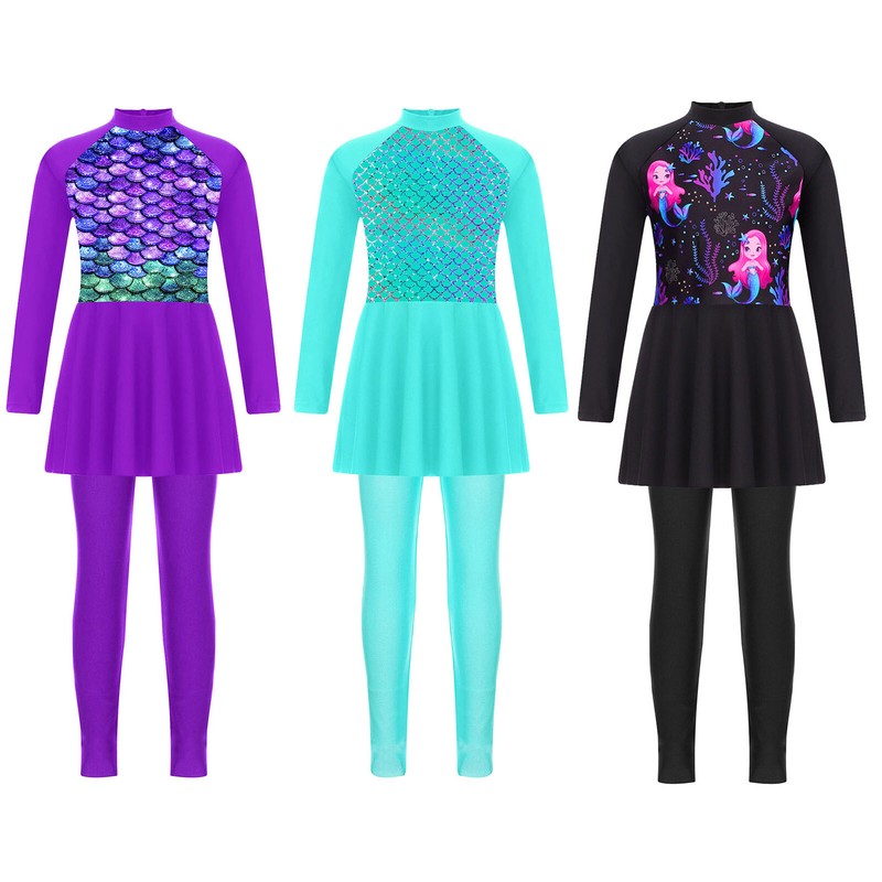 Vibrant fish scales or floral print makes girls more chic and active. Quickly-dry fabric keeps girls feel cool and dry..