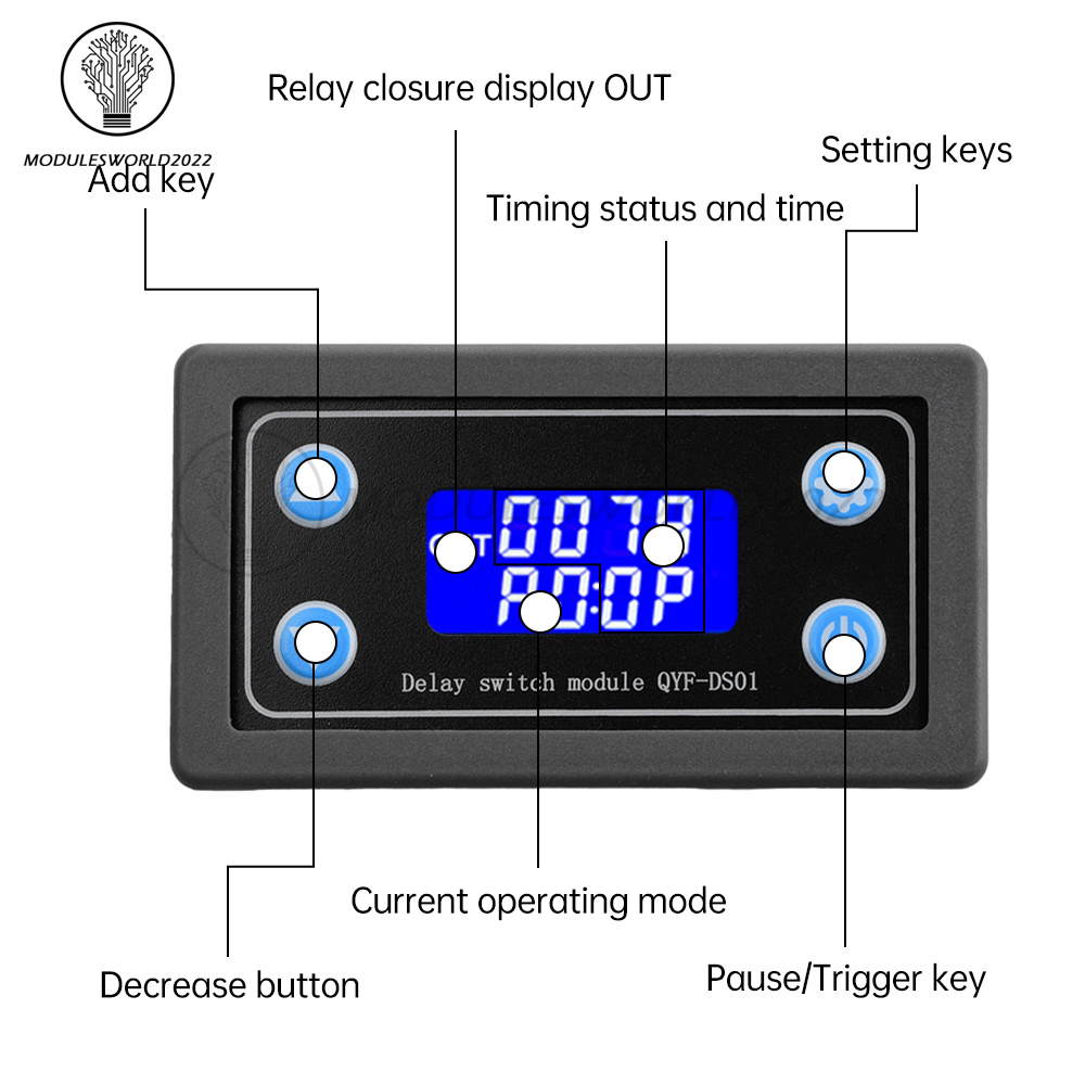 (P0~P7) mode, short press the pause button, the system has not triggered the timing, the system starts timing; the system has already timed, the system pauses the timing, the relay is disconnected, and the flashing display "OUT" as a reminder; P8 P9 mode, in the event of a trigger signal, the relay will remain disconnected; when the signal disappears, the relay conducts after timing CL; during the timing period, if there is another signal, the timing will be cleared.