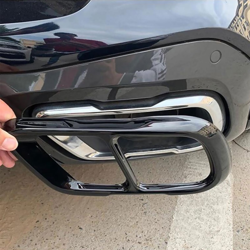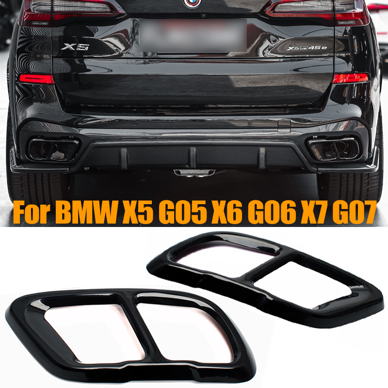 Gloss Black Dual Exit Exhaust Tips Muffler Tail Pipe Trim Covers For BMW X5 X6 X7 2019-2023 M Sports