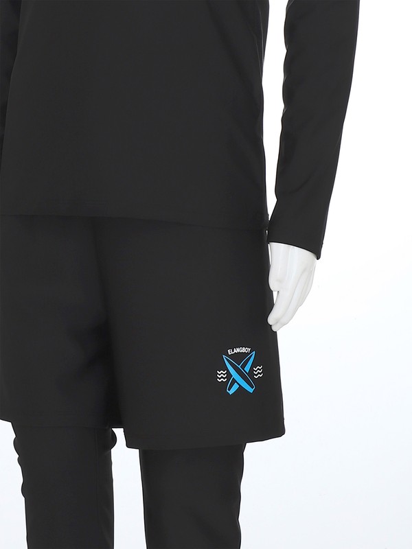 Designed with double sleeve, pullover swim top, elastic waistband with drawstring, and double layers swim pants.