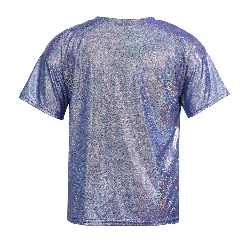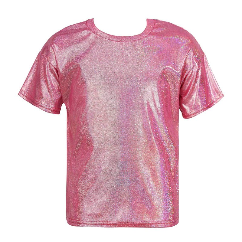 Kids Girls and Boys Metallic Shiny T-shirt Sparkly Jazz Dance Tops.