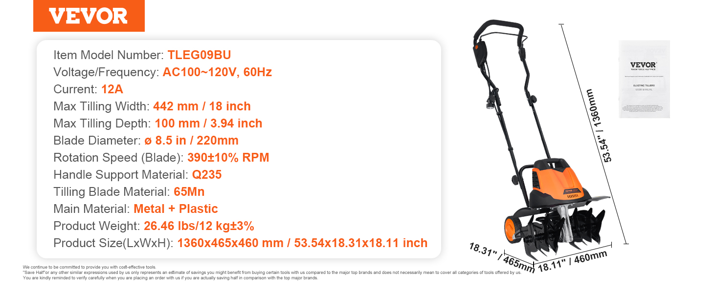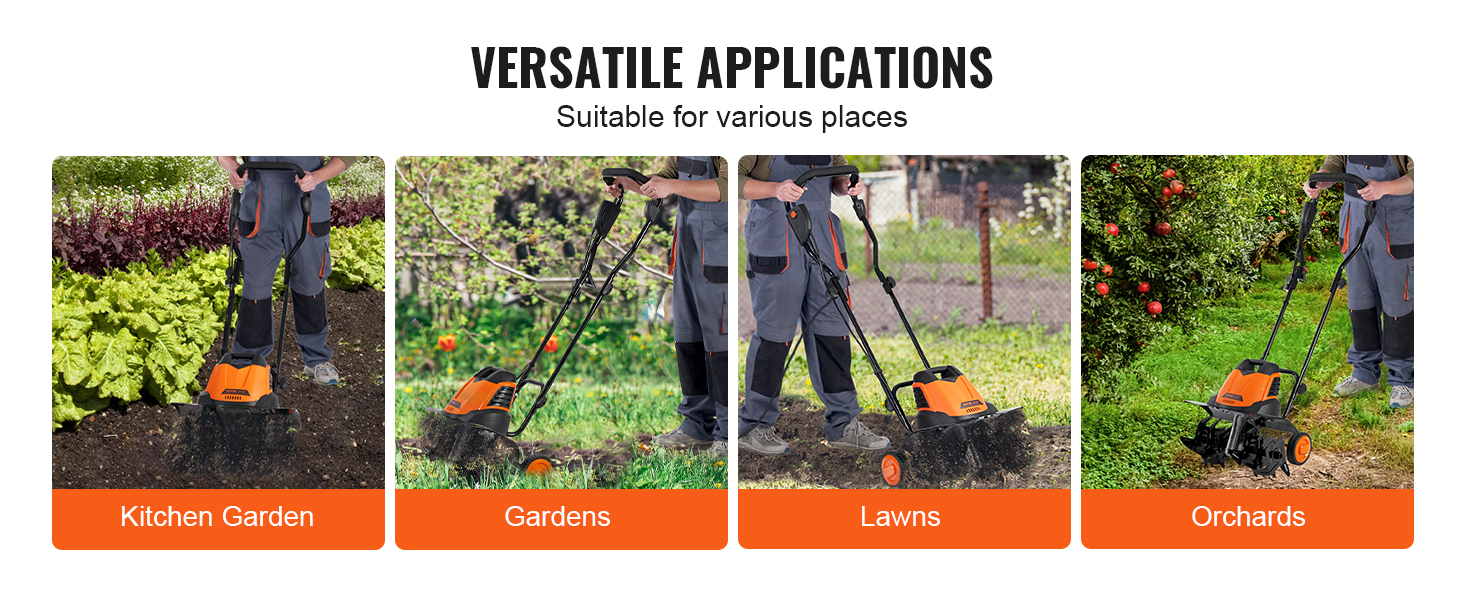 The garden tiller is ideal for for pre-cultivation, breaking up clods, loosening the soil, and creating a conducive environment for plant growth. Suitable for diverse settings, such as home gardens, flower beds, lawns, orchards, and more, it meets all your needs.