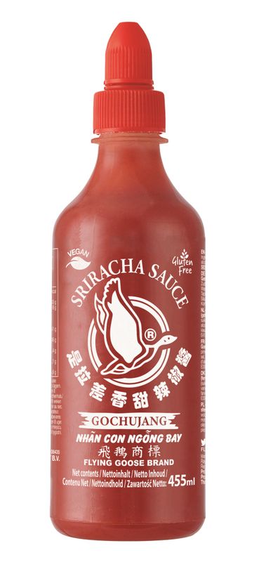 FLYING GOOSE Sriracha scharfe Chillisauce mit Gochujang-Geschmack (fermentierte Würzpaste) 455ml | Sriracha Chili Sauce GOCHUJANG