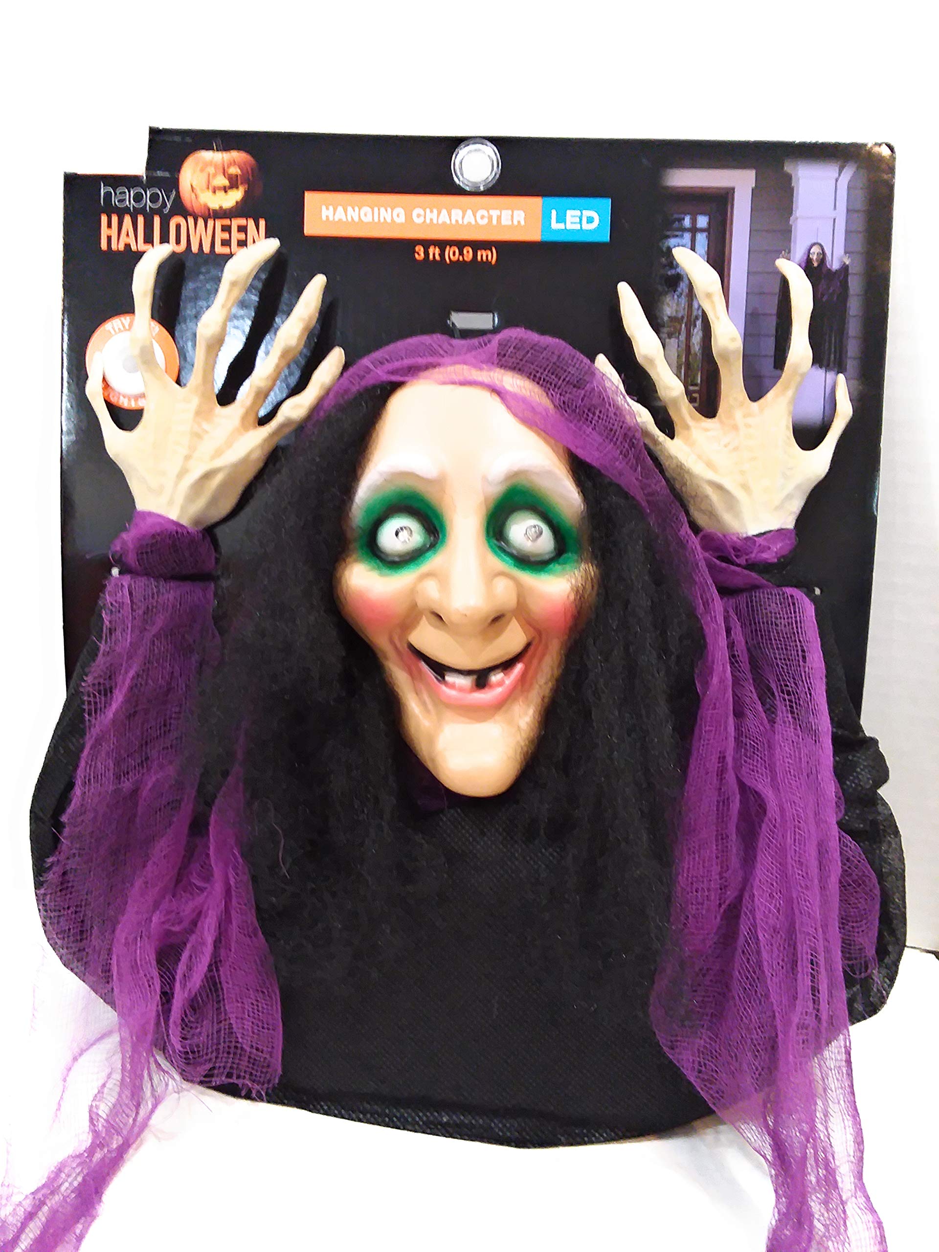 Happy Hallowwen Halloween Hanging Witch Character Light Up Eyes 3 feet Tall
