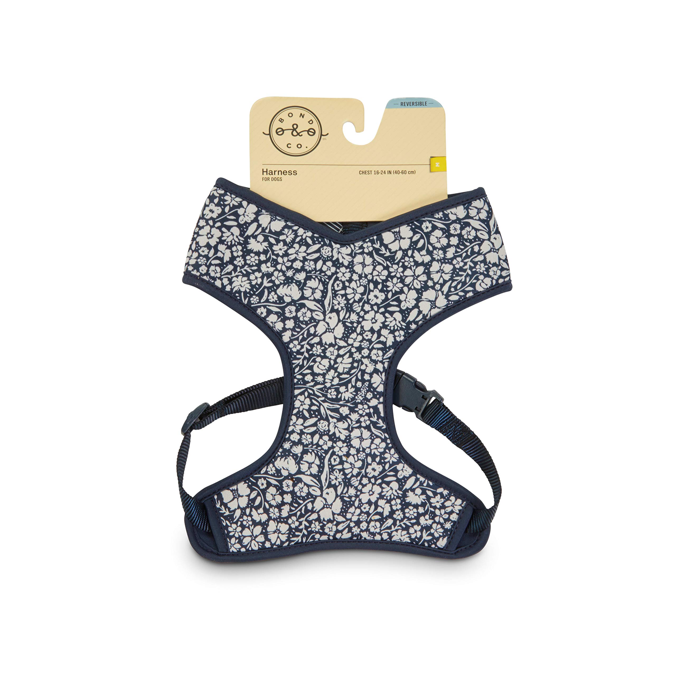 Petco Brand - Bond & Co. Black & White Floral & Plaid Reversible Dog Harness,