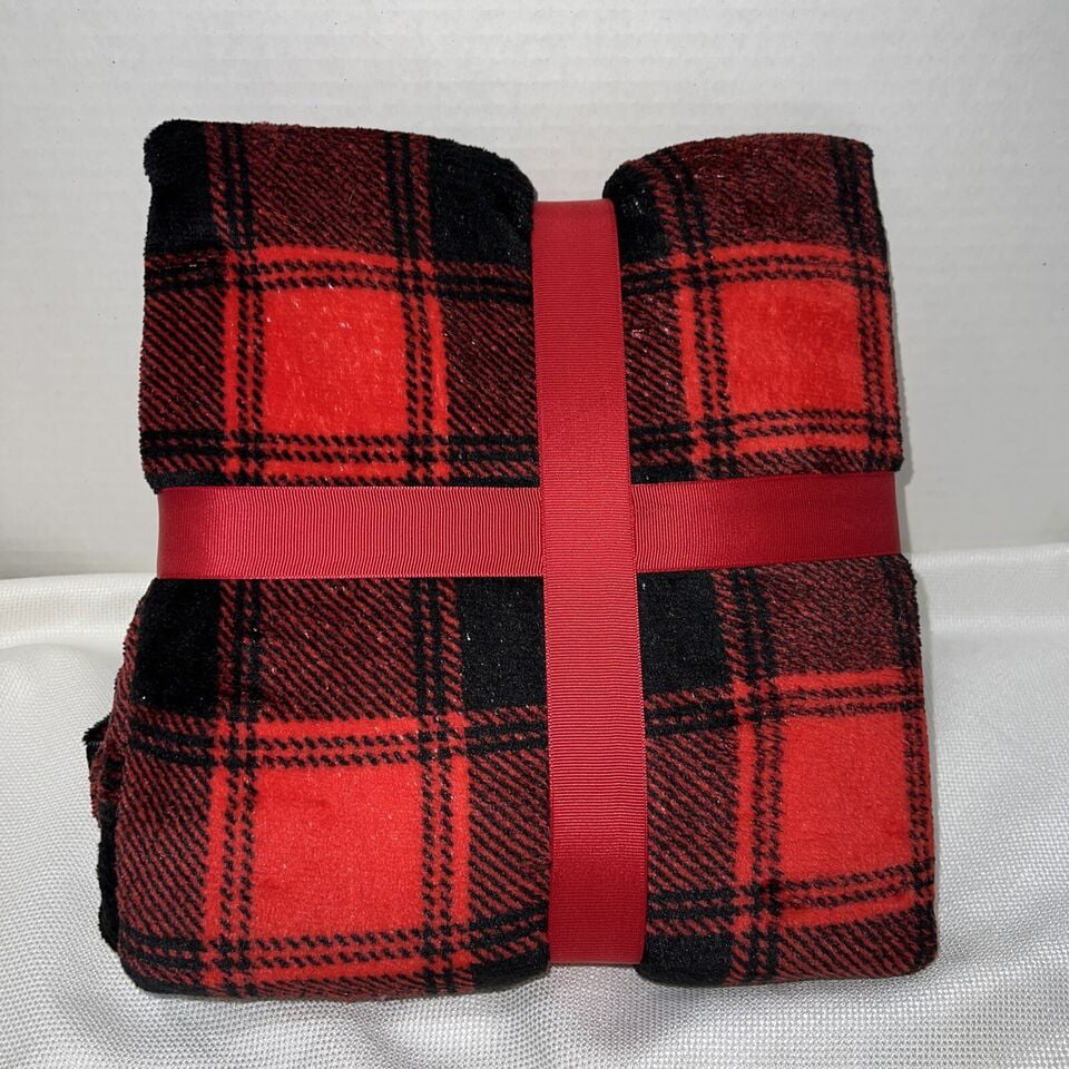 Red & Black Buffalo Check Pattern Lightweight Fleece Throw Blanket 50" x 60"