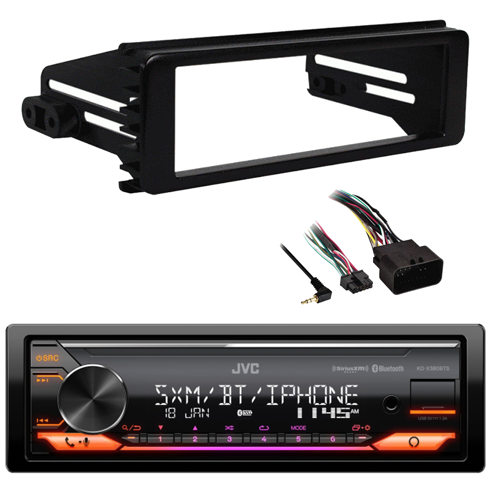 PACKAGE BUNDLE INCLUDES: JVC KD-X380BTS Single DIN Bluetooth USB AUX AM/FM Radio Stereo LED Illumination SiriusXM Ready Amazon Alexa Car Audio Receiver, Metra 99-9600 Stereo Installation Kit for Select 1998-2013 Harley Davidson Motorcycles (Black)