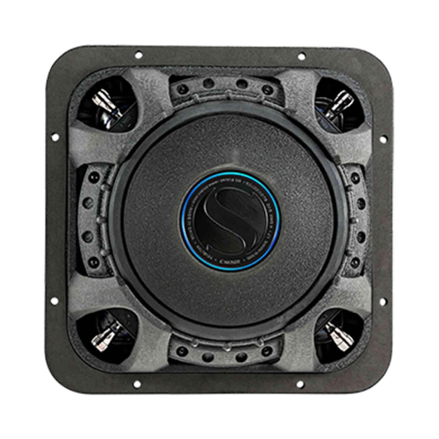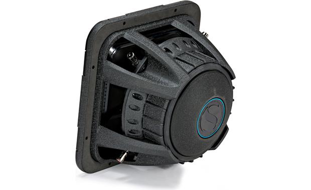 Subwoofer: Power Handling: 1200 Watt Max Power Handling: 600 Watt RMS SNR: 86.8 dB Frequency Response: 24-100Hz Dual 2-Ohm Voice Coils Injection-Molded Polypropylene Cone Patented Corner Ribs Minimize Distortion SoloKon 360-Degree Back Bracing Ribbed Santoprene Surround With Blue Surround Stitching UniPlate Back Plate And Pole Piece, Plus Perimeter Venting For Excellent Thermal Management Thick Tinsel Leads Large Ceramic Magnet Cast Aluminum Basket Satin-Nickel Plated, Spring-Loaded Speaker Terminals