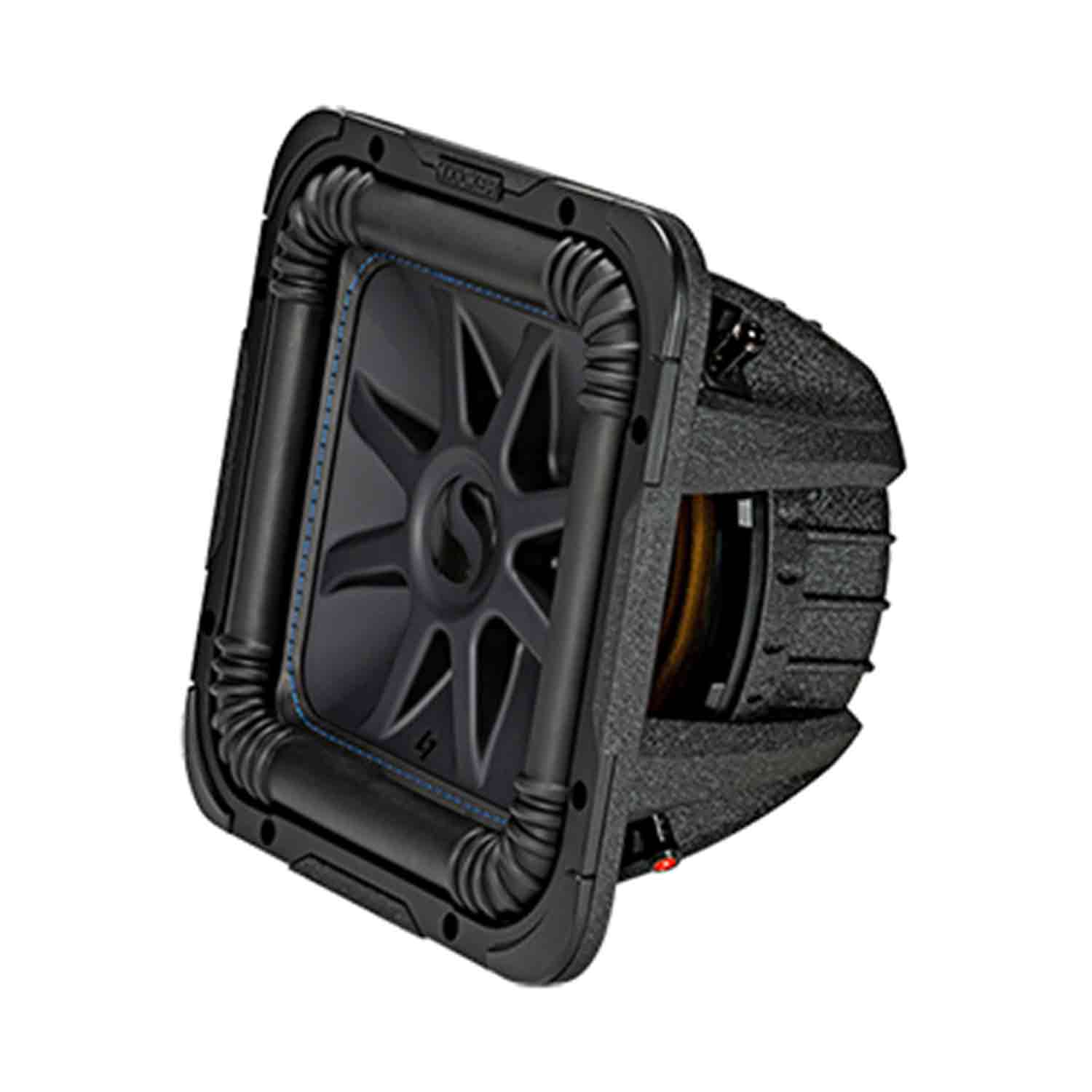 Don't be a square! Kick up your car audio with the power of the Kicker L7S Solo-Baric 10-Inch 1200-Watt 2-Ohm Square Subwoofer. This mighty subwoofer's square design isn't just unique, it translates into more cone area, air displacement, and overall volume. This sub features 600 watts of RMS power, a dual 2-ohm voice coil, a sensitivity of 86.8 dB and frequency response of 24-100 Hz. Meanwhile it also boasts an injection-molded polypropylene cone, patented corner ribs to minimize distortion, and 360-degree SoloKon back bracing. With a mounting depth of 6.25 inches and a mounting cutout dimension of 9.32 inches, all you need is an enclosure and you'll be one step closer to audio perfection.