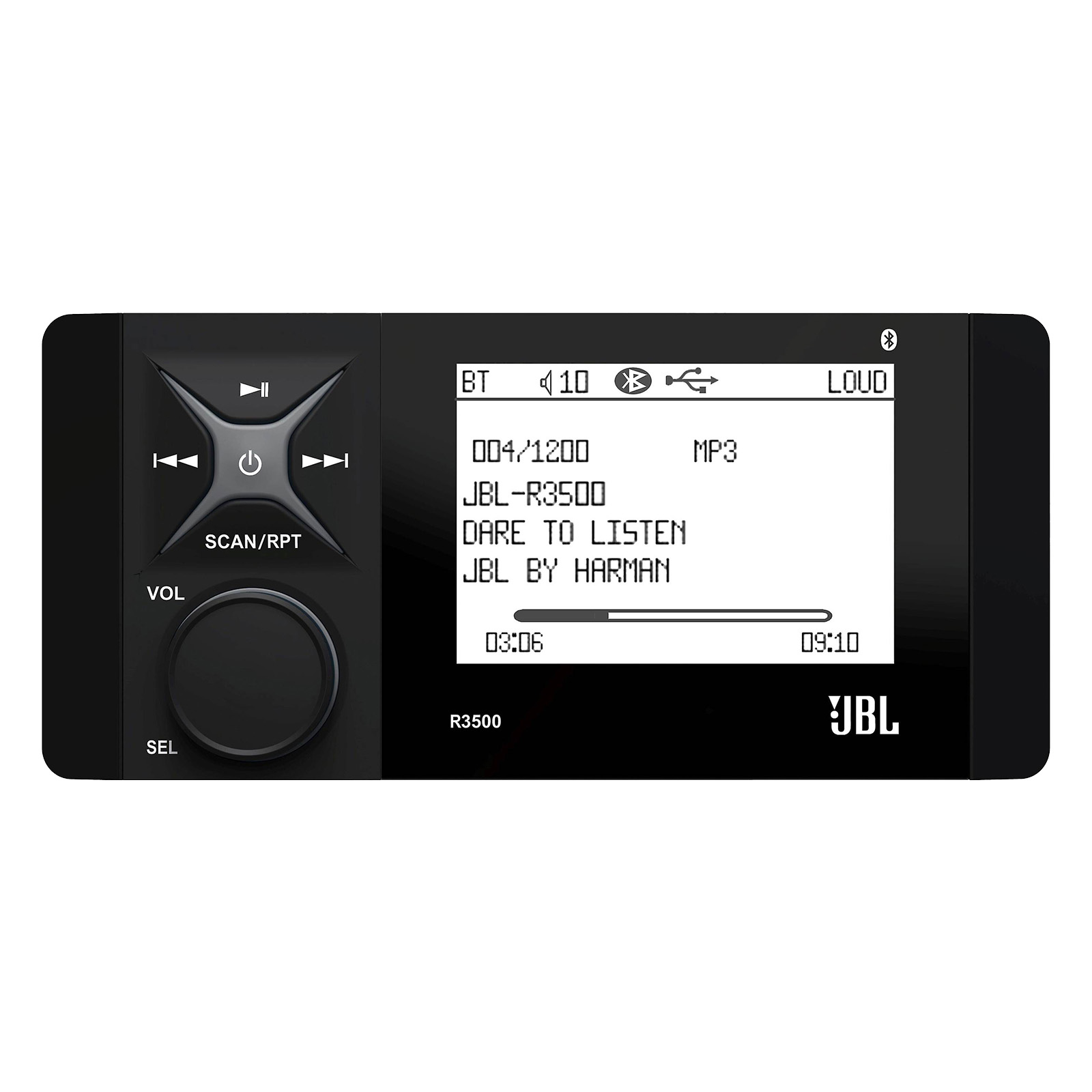 PACKAGE BUNDLE INCLUDES: JBL R3500 4" LCD Marine Bluetooth USB/AUX Stereo Receiver with 6.5" 225 Watt Max High Performance 2-Way Marine OEM Replacement White Speakers (QTY 4), Speaker Wire, 22" Antenna