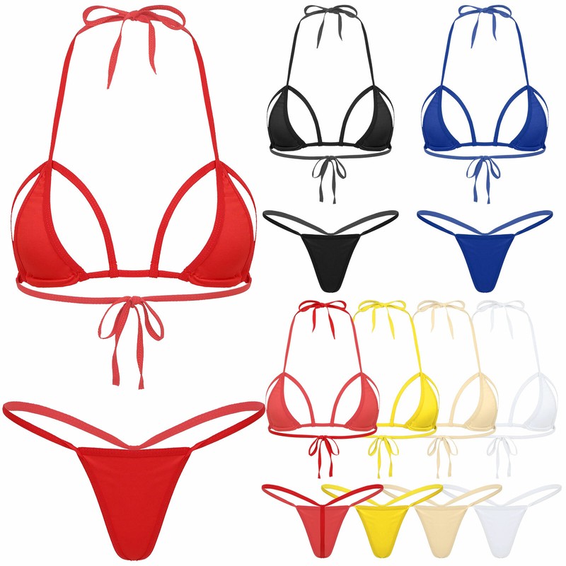 Women's Micro Monokini Bathing Suit Elastic Spaghetti Straps Mini Thong Swimsuit