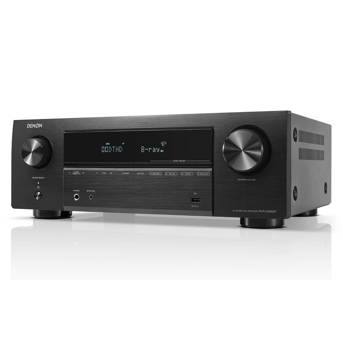 The AVR-X580BT supports Variable Refresh Rate (VRR), Quick Frame Transport (QFT), and Auto Low Latency Mode (ALLM) for smooth, lagfree gaming experience when connected with modern compatible gaming devices.