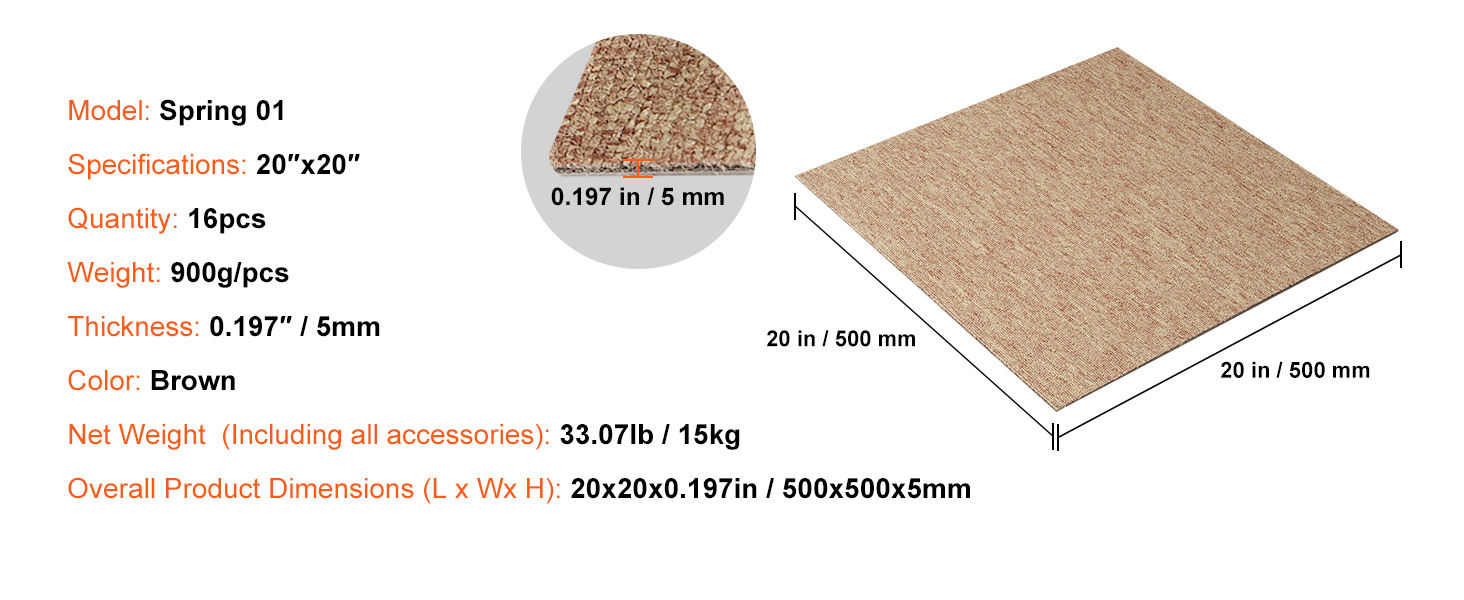 Modular Elegance: Elevate your space effortlessly with our exquisite collection of removable carpets. Crafted with precision, this set comprises 16 meticulously designed carpet tiles, each measuring 20"x20", culminating in a seamless expanse covering 44ft².