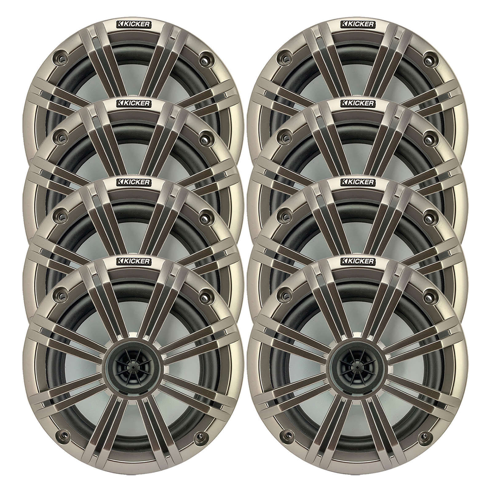 Kicker 6.5" 195 Watt Max Marine Boat Audio Speakers (Qty 8) w/ Silver Grilles