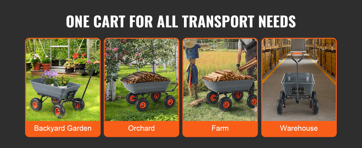KFFKFF Dump Cart with Impressive Load Capacity: This heavy-duty cart can effortlessly handle up to 600 lbs of weight, making it perfect for transporting heavy loads. With a spacious 4 cu.ft capacity, it enhances your productivity and efficiency.