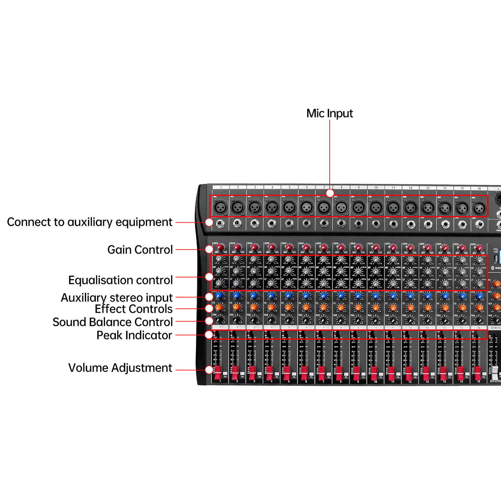 Versatile Channel Options: We have 6, 8, 12 and 16 channel consoles available to meet your audio mixing needs, whether it's a small home studio or a large live event.