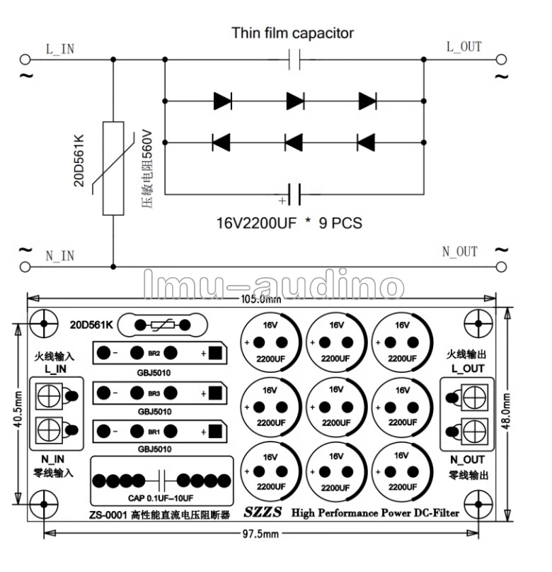 This module is used in conjunction with a decoder or power amplifier to filter the DC component of the power supply, eliminate and suppress the hum of the transformer, the high-frequency noise in the power supply, purify the power supply, and can significantly improve the sound quality of the power amplifier, enhance the resolution and make the background quiet.
