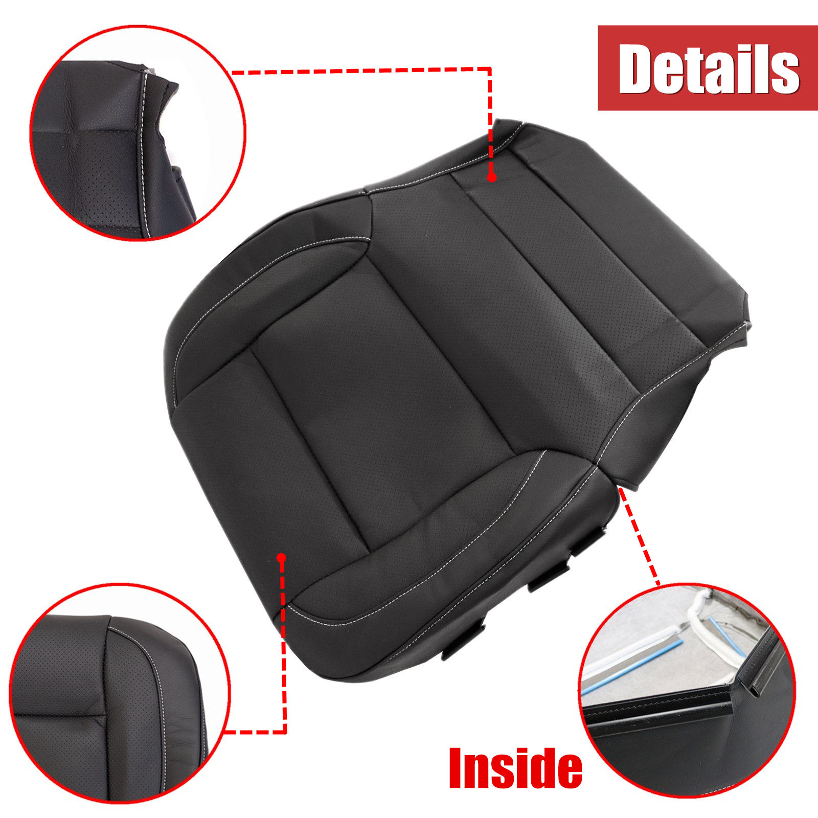 1x Driver Bottom Perforated Leather Seat Cover & 1x Driver Bottom Seat Foam Cushion