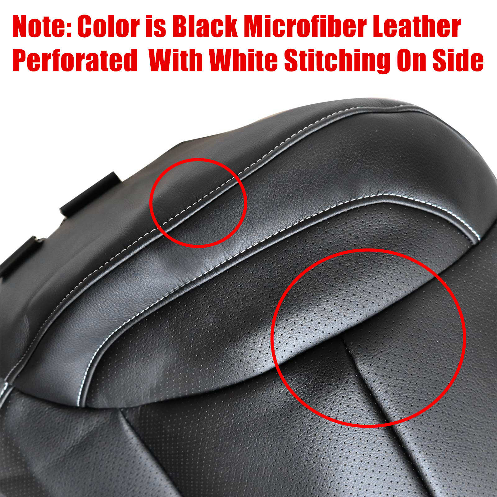 Note: Seat Cover Color is Black Microfiber Leather Perforated With White Stitching On Side
