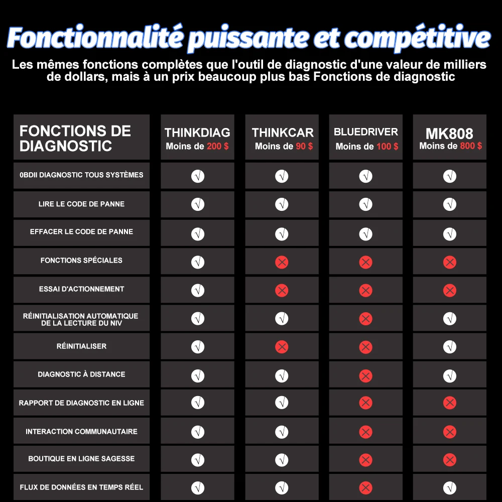 Les mêmes fonctions complètes que l'outil de diagnostic d'une valeur de milliers de dollars, mais à un prix beaucoup plus bas