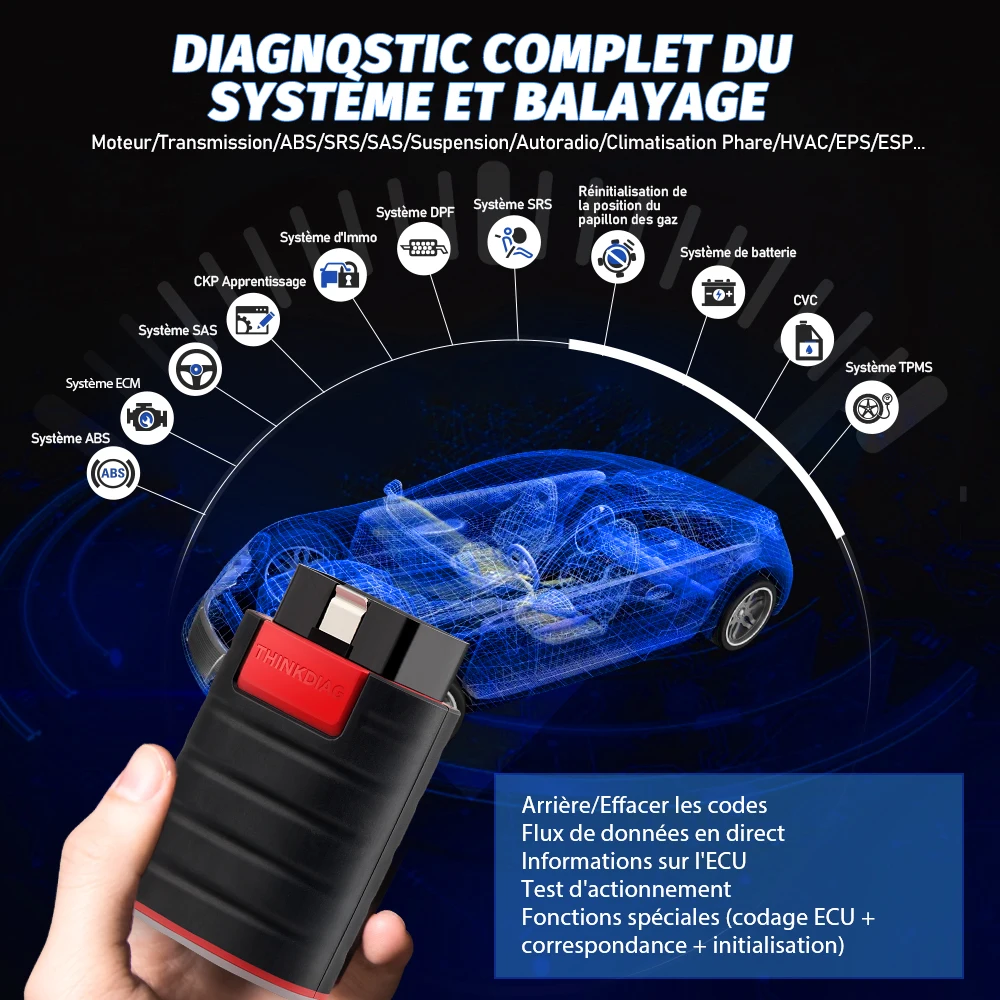 diagnostic professionnels. Outre la fonction OBDII complète, THINKDIAG