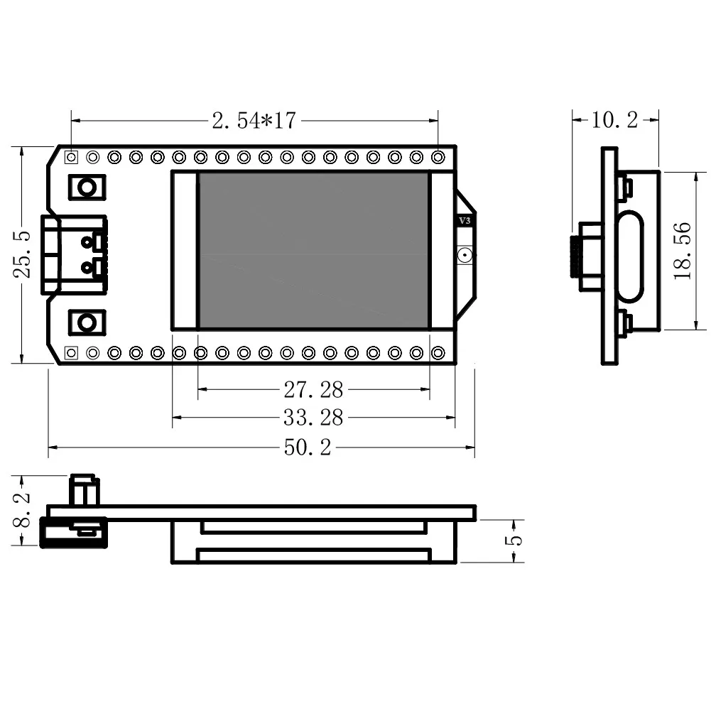 Memory: 384KB ROM, 512KB SRAM, 16KB RTC SRAM, 64Mbits (8MByte) SiP Flash