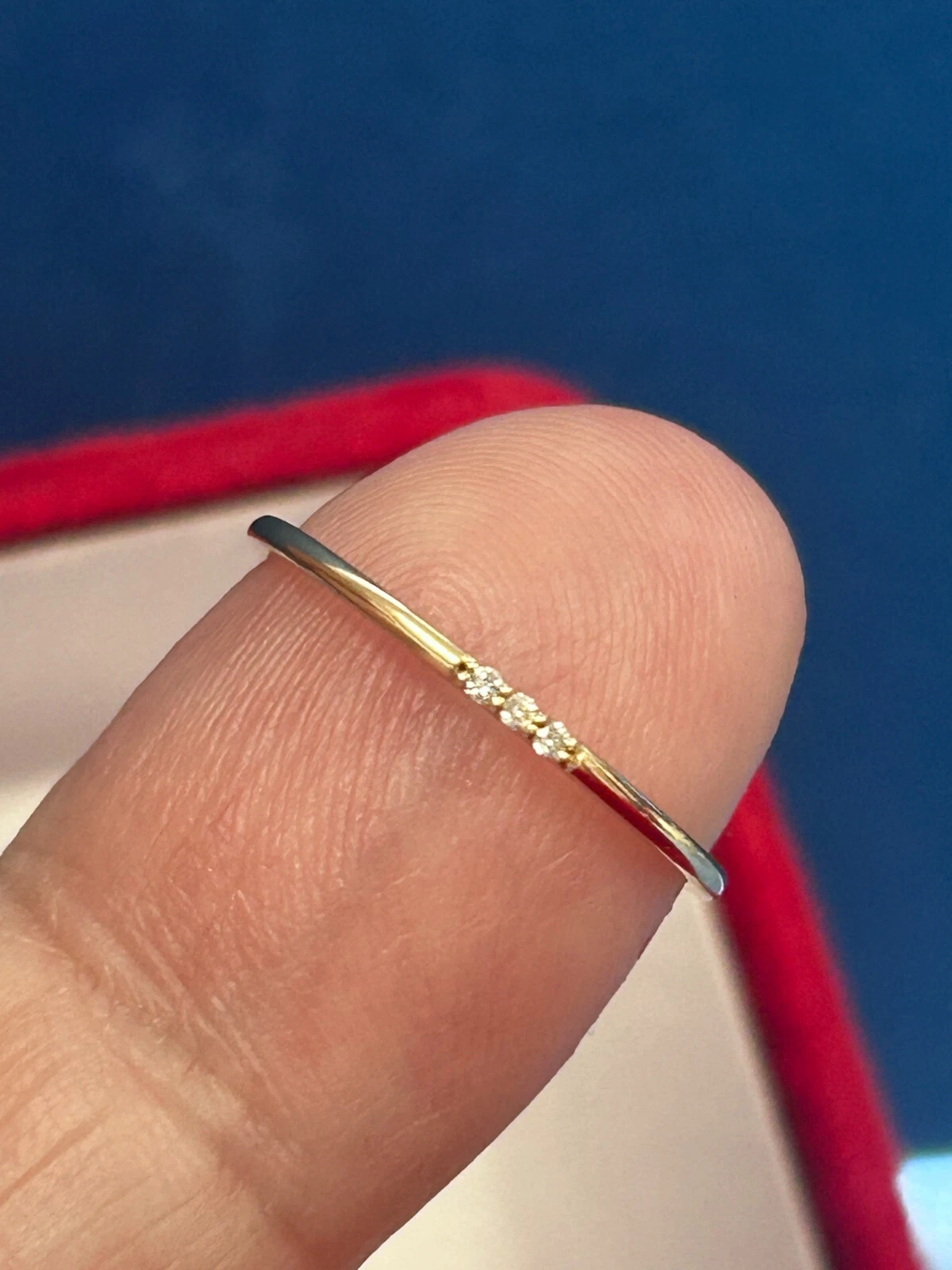 ● Imagine pairing this thin diamond ring with your engagement ring or other stacking bands, creating a unique and personalized look that tells your love story.