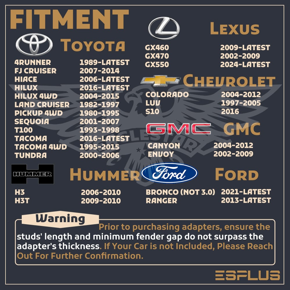 Compatibility chart from Ebay is only designated for Bolt Pattern, Center Bore And Thread Pitch check. The actual fitment varies based on the requirements of wheels. Lug nuts/bolts seat has to strictly follow the wheel condition. If you are not sure, please do not hesitate to ask customer service.