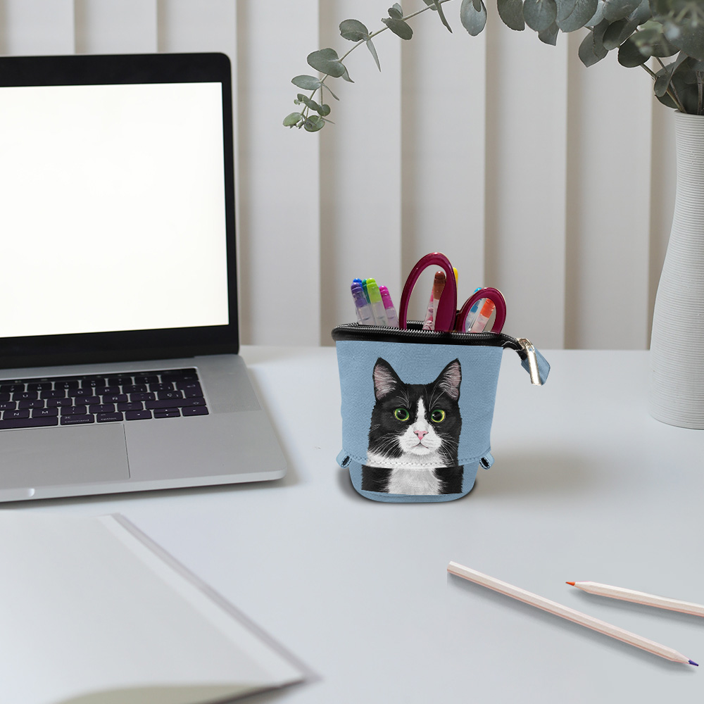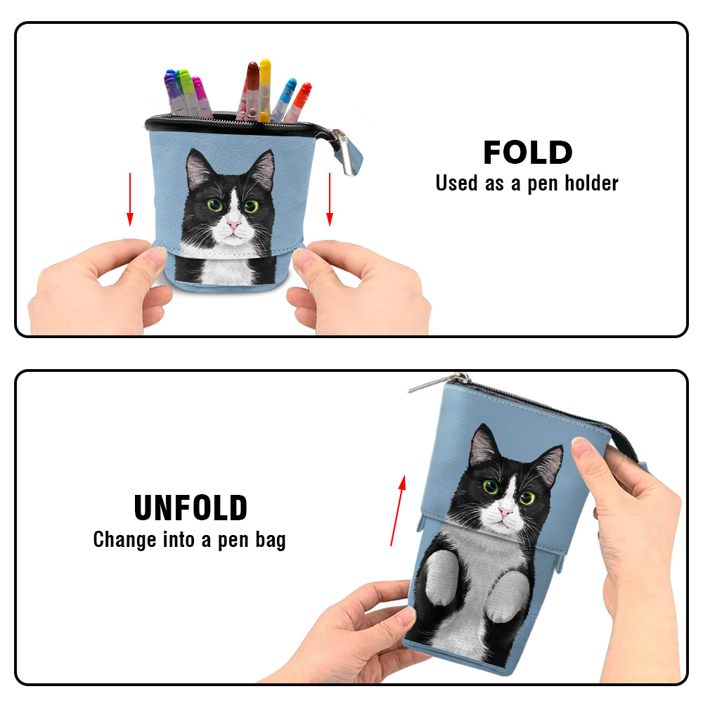 Nice colors and long-lasting cute designs printed on the pop-up pen pouches easily brighten up your desk or workspace.