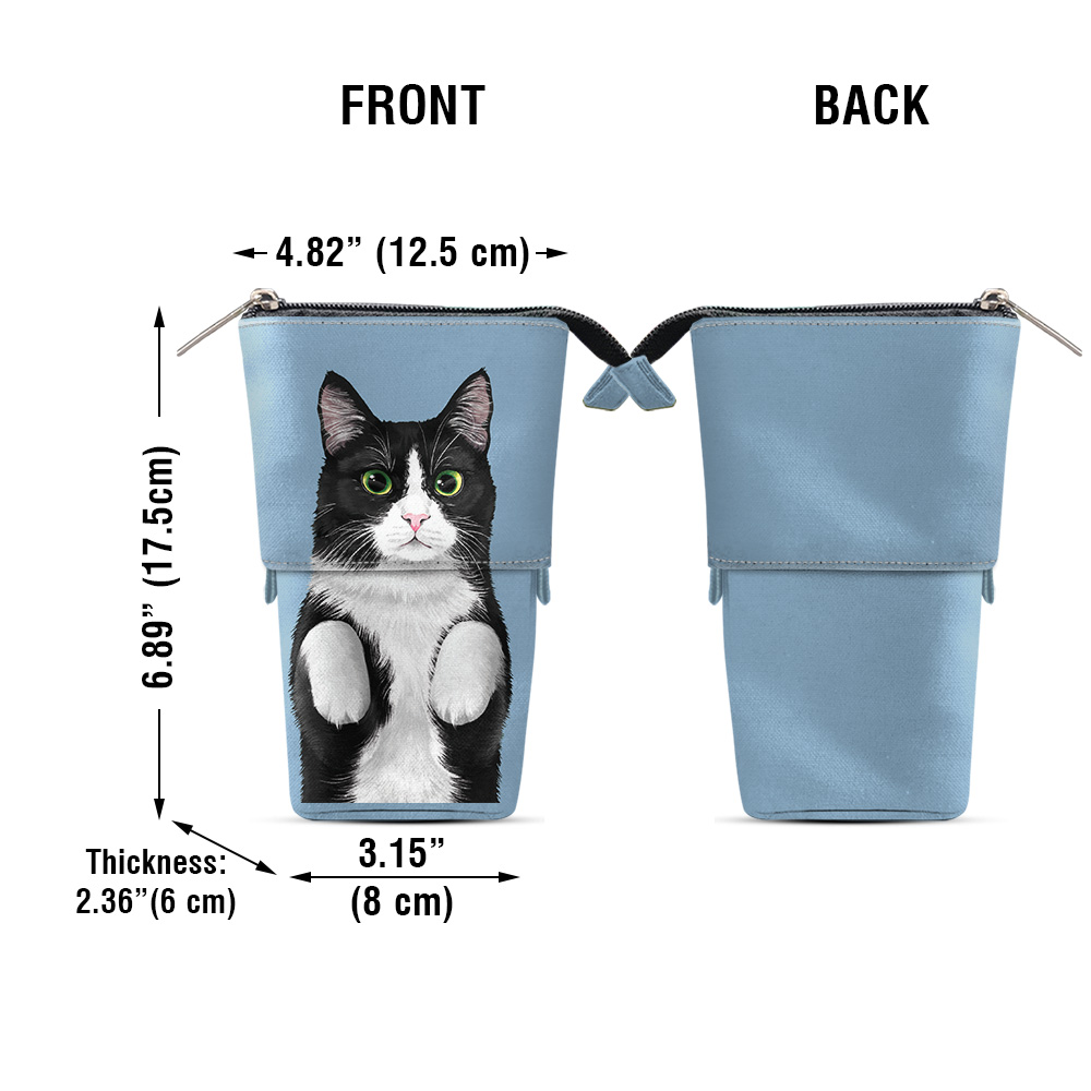 Size: The nice pop-up pen pouch has a stretched height of 6.89 inches (17.5 cm), a top width of 4.93 inches (12.5 cm), a bottom width of 3.15 inches (8 cm) and a thickness of 2.37 inches (6cm).
