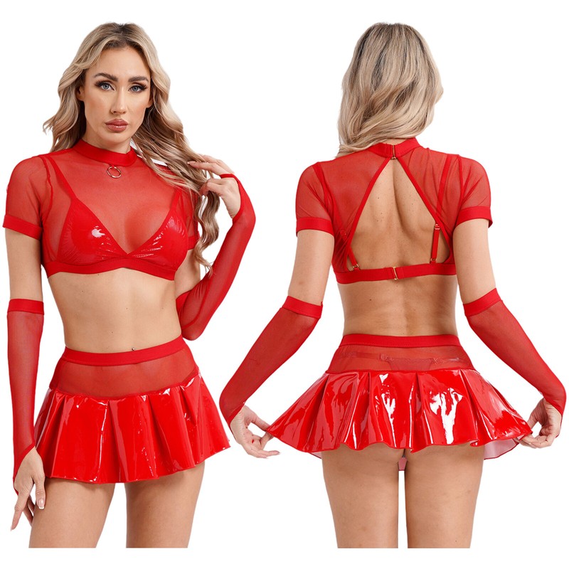 Metallic shiny surface highlights your skin tone, making you shiny and eye-catching in the crowd. Mini length shows your slender legs.